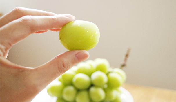 シャインマスカットは皮が薄く、そのまま食べれるのがいいところ。