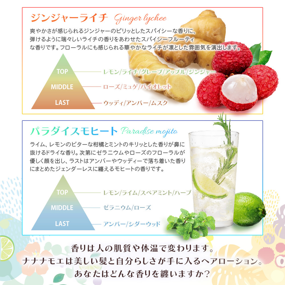 ナナナモエ(パラダイスモヒート)95ml【トロピカルな香りが彩る贅沢成分のヘアローション】